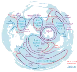 - ↑ Wind Driven Surface Currents: Gyres (em inglês)
