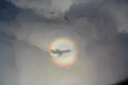A Glória é um fenômeno óptico que relembra um halo sobre a sombra do observador. Acredita-se que o efeito ocorre devido ao tunelamento da luz, quando raios de luz atravessam o ar para dentro de gotículas de água e parte de luz é emitida de volta por meio da ressonância óptica.[1]