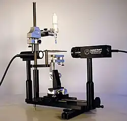 Em ciência de superfícies um instrumento geralmente chamado de goniômetro de ângulo de contato ou tensiômetro é usado para medir o ângulo estático de contato, ângulos que avançam/recuam e, em alguns casos, a tensão superficial. O primeiro goniômetro de ângulo de contato foi projetado pelo Dr. William Zisman, do Laboratório de Pesquisa Naval dos Estados Unidos, em Washington, D.C. e fabricado pela Ramé-Hart (agora companhia de instrumentos Ramé-Hart), Nova Jersey, EUA. O goniômetro de ângulo de contato manual original usava uma peça ocular com microscópio. O goniômetro de ângulo de contato de hoje usa uma câmera e um software para capturar e analisar o formato da gota e é mais adequado para estudos dinâmicos e avançados.