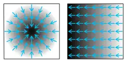Há três leis empíricas conhecidas como Lei de Fick, Lei de Fourier e Lei de Ohm ás quais são expressas em termos de campos gradientes. A leis citadas regem os chamados "fenômenos de transporte" da Física. Sendo que a Lei de Fick rege o transporte de massa, a Lei de Fourier o do calor e a Lei de Ohm o de cargo.[4]