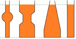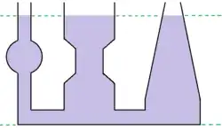 No fundo de diferentes recipientes, com um mesmo líquido e preenchidos com alturas equivalentes, haverá o mesmo valor de pressão hidrostática.[4]