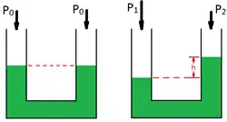 Para compreender melhor, podemos usar um exemplo comum: a pressão total é a soma das pressões (pode ser a pressão atmosférica acima da superfície do líquido) e (pressão na profundidade de um fluido.