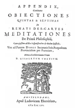 - 1 2 3 Descartes, R. (1641) Meditations on First Philosophy, in The Philosophical Writings of René Descartes, trans. by J. Cottingham, R. Stoothoff and D. Murdoch, Cambridge: Cambridge University Press, 1984, vol. 2, 1-62.