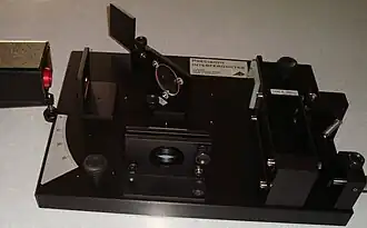 Interferômetro de Michelson é o tipo mais fundamental de interferômetro de dois feixes. A utilização consiste em dividir um feixe de luz em dois caminhos (diferentes comprimentos de onda ou materiais), refleti-los de volta e recombiná-los em um anteparo, produzindo um padrão de interferência. O instrumento pode ser usado também para medir comprimentos de onda com grande precisão.