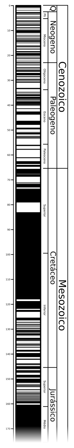 Um longo período de tempo durante o qual não ocorreram inversões dos polos magnéticos, o Normal Longo do Cretáceo (NLC, também chamado Supercron do Cretáceo ou C34) durou quase 40 milhões de anos, entre 120 e 83 milhões de anos atrás.Este período de tempo inclui estágios do período Cretáceo do Aptiano ao Santoniano, e pode ver-se ao observar a frequência das inversões magnéticas imediatamente anteriores e posteriores ao NLC, que a frequência decresceu regularmente antes deste período, atingindo o seu ponto mais baixo (sem inversões) durante o período NLC. Após o Supercron do Cretáceo a frequência das inversões aumentou lentamente ao longo dos 80 milhões de anos seguintes, até ao presente.