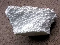 O material de espuma de poliestireno, mais conhecido em Portugal como Esferovite e no Brasil como Isopor, é um isolante derivado do petróleo e do gás natural do qual se obtém o polímero plástico do estireno na forma de grânulos. Para construir um bloco de, por exemplo, 1 m³, se incorpora num recipiente metálico uma certa quantidade do material que tem relação com a densidade final do mesmo e ao injetar vapor d'água se expandem os grânulos até formar um bloco. Este é cortado em placas da espessura desejada para sua comercialização mediante um arame metálico quente.