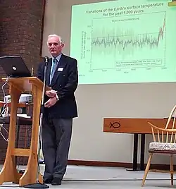 ![]() John Houghton durante uma conferência sobre mudanças climáticas em High Wycombe, em fevereiro de 2005 | |