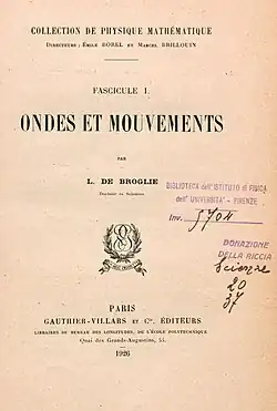 - ↑ The final pilot-wave model was presented in Solvay Conferences and later published, in "Ondes et mouvements" of 1926.