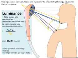 Como todas as unidades fotométricas, o lux tem uma unidade radiométrica correspondente. A diferença entre qualquer unidade fotométrica e a sua unidade radiométrica correspondente consiste na forma como são consideradas as contribuições de cada comprimento de onda da luz considerada: enquanto as unidades radiométricas são baseadas na potência física, com todos os comprimentos de onda sendo ponderados igualmente, as unidades fotométricas levam em conta as características do sistema visual de formação de imagem do olho humano, que é mais sensível a alguns comprimentos de onda do que outros. Em consequência, nas unidades fotométricas, a cada comprimento de onda é dado um peso diferente. O factor de ponderação é conhecido como função de luminosidade, uma curva construída com base na sensibilidade média do olho humana a cada comprimento de onda do espectro visível.[18] [19] [20] [21]