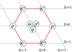 | Kaon | K+ | K- | 493,7 | +1 | 0 | 0 | 1,24×10−8 | |