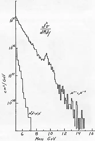 - D.C. Hom; et al. (1977). «Observation of a Dimuon Resonance at 9.5 Gev in 400-GeV Proton-Nucleus Collisions» (PDF). Physical Review Letters. 39: 252–255. Bibcode:1977PhRvL..39..252H. doi:10.1103/PhysRevLett.39.252