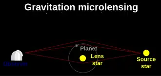 Em 1991, os astrônomos Shude Mao e Bohdan Paczyński propuseram o uso de microlentes gravitacionais para procurar companheiros binários de estrelas, e sua proposta foi refinada por Andy Gould e Abraham Loeb em 1992 como um método para detectar exoplanetas. Os sucessos com o método datam de 2002, quando um grupo de astrônomos poloneses (Andrzej Udalski, Marcin Kubiak e Michał Szymański de Varsóvia e Bohdan Paczyński) durante o projeto OGLE (Optical Gravitational Lensing Experiment) desenvolveu uma técnica viável. Durante um mês, eles encontraram vários planetas possíveis, embora limitações nas observações impedissem uma confirmação clara. Desde então, vários exoplanetas confirmados foram detectados usando microlente. Este foi o primeiro método capaz de detectar planetas de massa semelhante à da Terra em torno de estrelas comuns da sequência principal.[54]