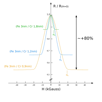 - M. N. Baibich , J. M. Broto, A. Fert, F. Nguyen Van Dau, F. Petroff, P. Eitenne, G. Creuzet, A. Friederich, and J. Chazelas (1988). «Giant Magnetoresistance of (001)Fe/(001)Cr Magnetic Superlattices». Physical Review Letters. 61 (21): 2472 - 2475. doi:10.1103/PhysRevLett.61.2472