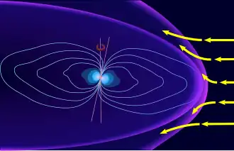 - Russell, C.T. (2001). «The dynamics of planetary magnetospheres». Planetary and Space Science. 49: 1005–1030. doi:10.1016/S0032-0633(01)00017-4