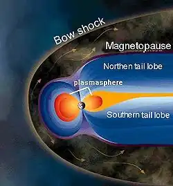 | Parâmetros da magnetosfera[5][6][7] | |