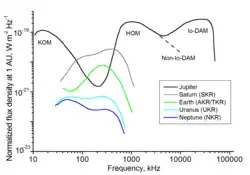 - Zarka, P.; Kurth, W.S. (1998). «Auroral radio emissions at the outer planets: Observations and theory». Journal of Geophysical Research. 103 (E9): 20,159–194. doi:10.1029/98JE01323
