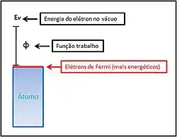 Para uma explicação detalhada do processo de funcionamento vamos recorrer a alguns conceitos básicos da física quântica. Todo átomo em um sólido contém o que é chamado de energia de Fermi que é definida como a energia dos elétrons da camada mais externa do átomo, ou seja, refere-se aos elétrons do último nível ocupado. Outro conceito importante é a função trabalho que consiste na energia necessária para retirar um elétron da última camada energética de uma átomo levando-o até o “vácuo” onde o mesmo estará livre de qualquer atração com o átomo de origem; no vácuo o elétron adquire uma energia diferente daquela no material, dada a ausência de interações com o material sólido.
