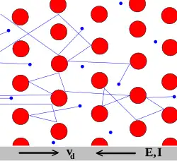 é o tempo livre médio de um portador de carga, e é a mobilidade elétrica. Se se introduz a densidade do gás de portadores de carga n (partículas por unidade de volume), podemos relacionar a velocidade média com uma corrente elétrica: