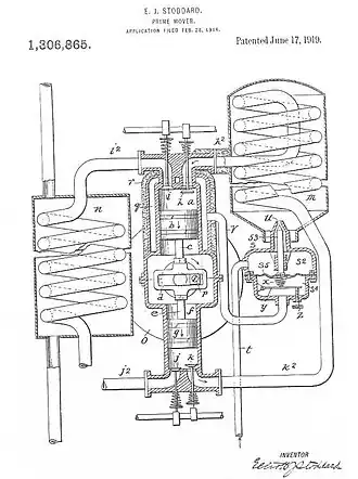 Segundo Elliott J. Stoddard, a operação da forma dos dispositivos na figura do motor stoddard de 1933 é a combinação de um reservatório de ar comprimido frio a alta pressão, um cilindro com um pistão adaptado para alternar entre eles, um segundo cilindro com um pistão adaptado para alternar no mesmo, a entrada do primeiro. Temos que o cilindro se comunica com o referido reservatório e a sua saída comunica-se com a entrada do segundo cilindro, sendo os referidos cilindros uma capacidade tal que o ar que passa entre eles deve ser mantido a um volume aproximadamente constante, um aquecedor para o ar que passa de um dos referidos cilindros para o outro, e um cilindro de trabalho adaptado para receber o ar aquecido do primeiro cilindro expandindo o mesmo de forma que volte-o para o referido reservatório.