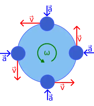 Um movimento circular, na mecânica clássica, é aquele em que um objeto ou ponto material se desloca numa trajetória circular. Uma força centrípeta muda de direção o vetor velocidade, sendo continuamente aplicada para o centro do círculo. Esta força é responsável pela chamada aceleração centrípeta, orientada para o centro da circunferência–trajectória. Pode haver ainda uma aceleração tangencial, que obviamente deve ser compensada por um incremento na intensidade da aceleração centrípeta a fim de que a trajectória não deixe de ser circular.