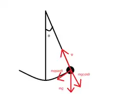 Considere um objeto preso a uma haste inextensível oscilando sob ação da força gravitacional. A este sistema denominamos Pêndulo Simples. De maneira geral, atuam sob o objeto a força de tração da haste, que o mantém oscilando em um arco de círculo a uma distância fixa do ponto fixo que prende a haste ao teto; e também a força gravitacional . Decompomos a força gravitacional de forma que conhecemos a componente na direção da força de tração, que nos fornece , e também a componente responsável pelo movimento