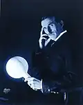 ![]() Nikola Tesla, ca. 1893, fotografado por Napoleon Sarony. | |