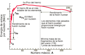 O pico do ferro marca o final da vida das estrelas. Como se vê no diagrama, o rendimento a cada nova etapa de fusão diminui rapidamente. Chegando ao ferro esse rendimento é negativo e as reações de fusão se detêm.
