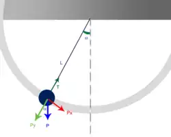 É fácil ver que a segunda lei de Newton fornece a seguinte equação diferencial ordinária não-linear conhecida como equação do pêndulo: