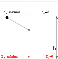 Como no ponto mais baixo temos somente energia cinética, e no ponto mais alto temos somente energia potencial, podemos reescrever a equação como sendo.