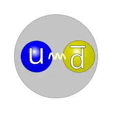. Cada píon é composto por um quark e um antiquark e é, portanto, um méson. Píons são os mésons leves e são instáveis, sendo que os píons carregados