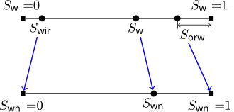 Cada fase da saturação deve ser maior do que a saturação irredutível, e cada fase é assumida contínua no interior do meio poroso.