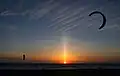 Um pilar de luz formado no pôr do sol perto de Toronto, Ontário.