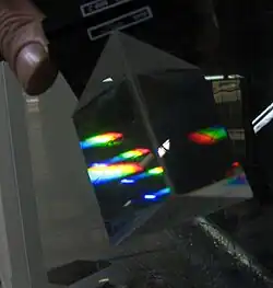 Em óptica, um prisma dispersivo é um prisma óptico usado para dispersar a luz, ou seja, para separar a luz em seus componentes espectrais (as cores do arco-íris). Diferentes comprimentos de onda (cores) de luz serão desviados pelo prisma em diferentes ângulos.[1] Isso é resultado do índice de refração do material do prisma variando com o comprimento de onda (dispersão). Geralmente, comprimentos de onda mais longos (vermelho) sofrem um desvio menor do que comprimentos de onda mais curtos (azul). A dispersão da luz branca em cores por um prisma levou Sir Isaac Newton a concluir que a luz branca consistia em uma mistura de cores diferentes.