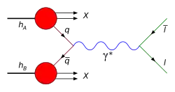 Em física de partículas, o processo Drell-Yan é a criação de um fóton virtual a partir da combinação de pártons de dois hádrons que colidem. O subsequente "decaimento" deste fóton em um par de léptons termina a caracterização do processo. No referencial de centro de massa dos hádrons, a combinação de ordem dominante é a aniquilação de um quark de um hádron com um antiquark do outro hádron. Na ordem próxima à dominante há a emissão de um glúon (vulgo termo de aniquilação) além do fóton e também a combinação de um (anti)quark de um hádron com um glúon do outro hádron, formando o fóton virtual mais um (anti)quark (vulgo termo de espalhamento Compton).