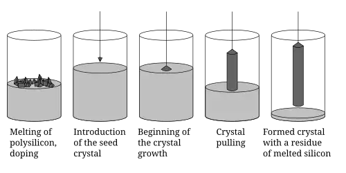 - ↑ J. Czochralski (1918) "Ein neues Verfahren zur Messung der Kristallisationsgeschwindigkeit der Metalle" [A new method for the measurement of the crystallization rate of metals], Zeitschrift für Physikalische Chemie, 92 : 219–221.