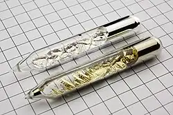 - ↑ Jansen, Martin (dezembro 2005). «Effects of relativistic motion of electrons on the chemistry of gold and platinum». Solid State Sciences. 7 (12): 1464–1474. Bibcode:2005SSSci...7.1464J. doi:10.1016/j.solidstatesciences.2005.06.015