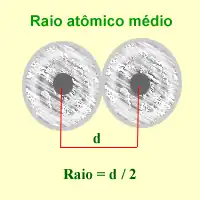 Devido a dificuldade em obter-se o raio de átomos isolados determina-se (através de raio X) a distância entre os núcleos de dois átomos ligados do mesmo elemento, no estado gasoso. O raio atômico será metade da distância calculada.