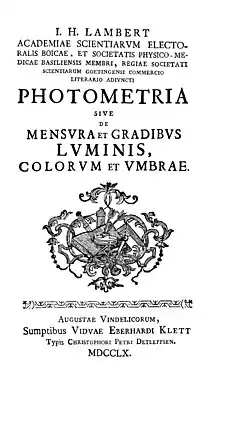 - 1 2 3 Anding, Ernst (1892). Photometrie: Photometria, sive De mensura et gradibus luminis, colorum et umbrae (1760). Nova Iorque: W. Engelmann
