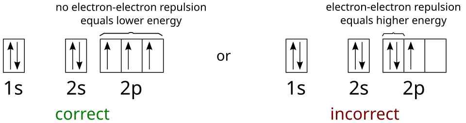A regra de Hund resume essa constatação experimental: elétrons numa mesma subcamada tendem a permanecer desemparelhados (em orbitais separados), com spins paralelos. Portanto, haverá uma menor repulsão intereletrônica.