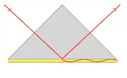 onde k() é o vetor de onda, é a permissividade relativa e é a permeabilidade relativa do material (1: o bloco de vidro, 2: o filme metálico), enquanto é a frequência angular e é a velocidade da luz no vácuo.[6]