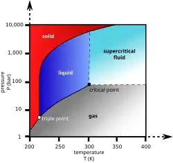 Para evitar isso, a amostra pode ser trazida por meio de dois possíveis caminhos alternativos a partir da fase líquida para a fase gasosa sem cruzar a fronteira líquido-gás no diagrama de fase. Na liofilização, isso significa ir ao redor à esquerda (baixa temperatura, baixa pressão; seta azul). No entanto, algumas estruturas são interrompidas até mesmo pela fronteira sólido-gás. Na secagem supercrítica, por outro lado, vai em torno da linha para a direita, sobre a alta temperatura e alta pressão (seta vermelha). Esta rota de líquido para gás não atravessa qualquer fronteira fase, em vez de passar pela região supercrítica, onde a distinção entre gás e líquido deixa de ser aplicável. Densidades da fase líquida e fase vapor torna-se igual em ponto crítico de secagem.