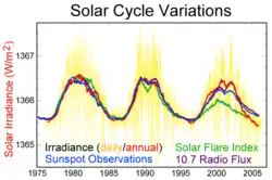 110. «Construction of a Composite Total Solar Irradiance (TSI) Time Series from 1978 to present». Consultado em 5 de outubro de 2005. Arquivado do original em 22 de agosto de 2011