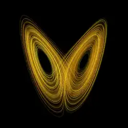 Pequenas diferenças nas condições iniciais, tais como as causadas por erros de arredondamento em computação numérica, produzem resultados amplamente divergentes para tais sistemas dinâmicos,[2] tornando a previsão a longo prazo impossível, em geral.[3] Isso acontece apesar de estes sistemas serem deterministas, o que significa que seu comportamento futuro é totalmente determinado por suas condições iniciais, sem elementos aleatórios envolvidos.[4] Em outras palavras, a natureza determinista desses sistemas não os torna previsíveis.[5][6] Este comportamento é conhecido como caos determinístico, ou simplesmente caos.