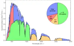 Logo ao comparar a região de maior eficiência de um painel solar (figura 1) e a janelas de transmissão do infravermelho pela atmosfera (figura 2), encontra-se uma região situada no comprimento de onda de 1000nm (1μm) onde a maior reposta da célula e menor absorção atmosférica, onde seria viável a construção do sistema de energia sem fio.