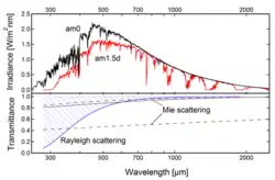 Para determinados comprimentos de onda o espalhamento de rayleigh é mais intenso devido ao gases presentes na atmosfera, já o espalhamento de mie e o não seletivo ocorre geralmente ocorre quando o comprimentos das partículas que a onda encontra é comparavel com o tamanhos das moléculas e água presentes geralmentes em nuvens chuva e névoa.