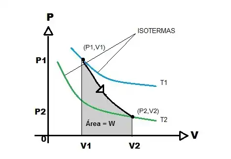 Como trata-se de uma expansão, Vf será sempre maior que Vi, por isso, a razão entre elas será maior que 1, e logaritmo natural de um número maior que 1 é sempre positivo. Portanto, o trabalho (W) realizado por um gás ideal em uma expansão isotérmica é sempre positivo. Para uma compressão (Vf menor que Vi) o trabalho (W), nas mesmas condições, será negativo. Usando a Primeira lei da termodinâmica para gases ideais, sabe-se que: