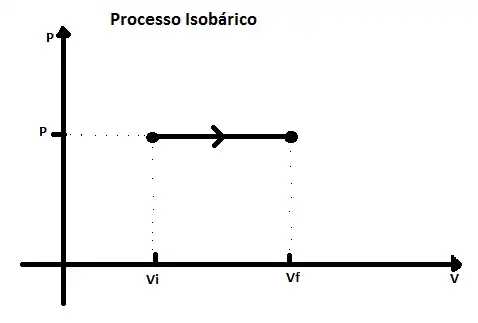 A transformação isobárica é um processo em que a pressão se mantém constante, como processos que ocorrem à pressão atmosférica. Podemos relacionar essa pressão (P), com a temperatura (T) e o volume (V), de acordo com a Lei dos gases ideais: