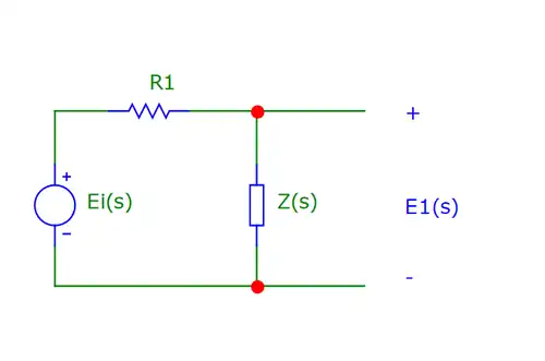 Por outro lado, o cálculo de eo(t) poderia ter sido desenvolvido pela aplicação da técnica de Equivalente Thevenin ao circuito de Laplace, o que levaria de forma até mais simples aos resultados de T(s) e Eo(s).