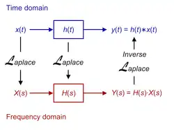 Dada uma simples descrição matemática ou funcional de entrada ou saída de um sistema, a transformada de Laplace fornece uma descrição alternativa que, em um grande número de casos, diminui a complexidade do processo de análise do comportamento do sistema ou sintetiza um novo sistema baseado em características específicas. Nesse sentido, a transformada de Laplace converte uma equação diferencial em equação algébrica e uma convolução em multiplicação.