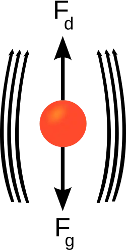 Em um objeto em queda livre, por exemplo, a resistência do ar provoca no corpo uma força de arrasto (Fd) dirigida para cima, que aumenta o seu módulo conforme o objeto ganha velocidade. Em determinado instante da trajetória sua velocidade fará com que a força de arrasto se iguale à força da gravidade (Fg), que estará agindo sobre o objeto no sentido oposto (para baixo). Atinge-se a velocidade terminal no momento em que a força de arrasto contrabalança a força gravitacional, fazendo com que o objeto caia sem aceleração com uma velocidade constante.[1]